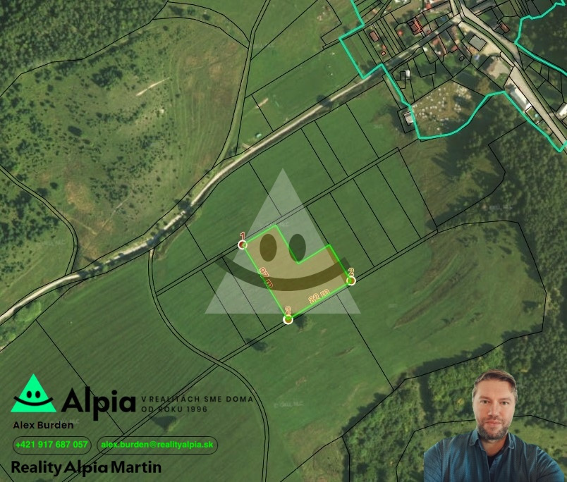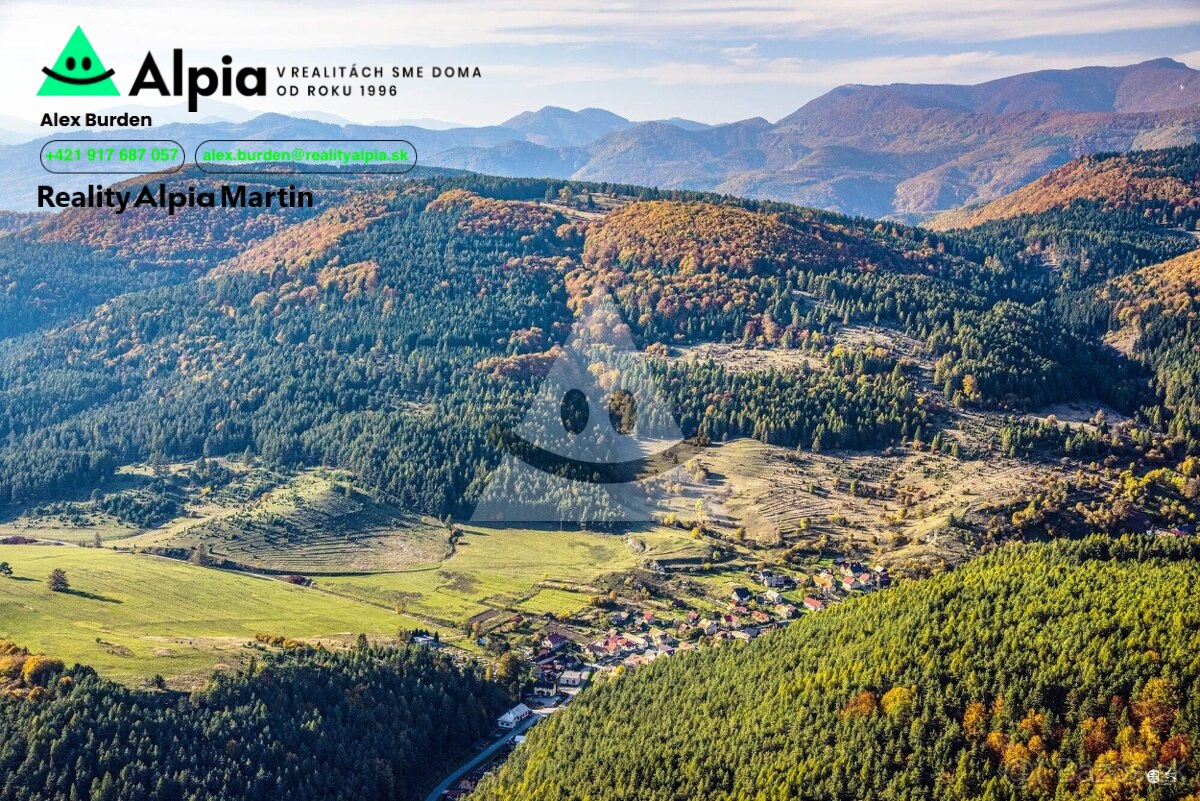 We offer for sale a beautiful, spacious plot with a total area of 1000 m² located in the picturesque village of Brieštie, set in the peaceful natural surroundings of the Turiec Basin. The plot is gently sloping, northwest-facing, and offers stunning views of surrounding coniferous forests.