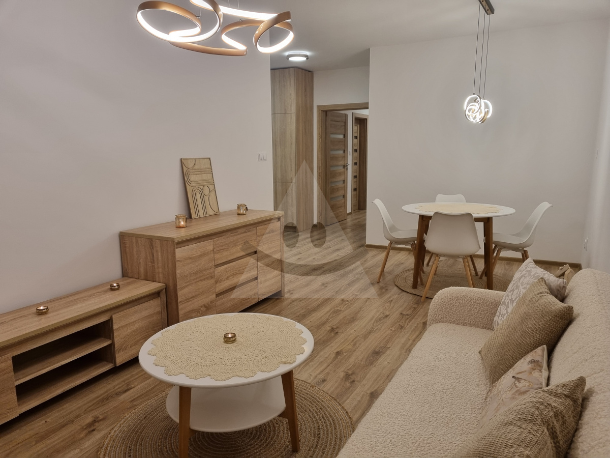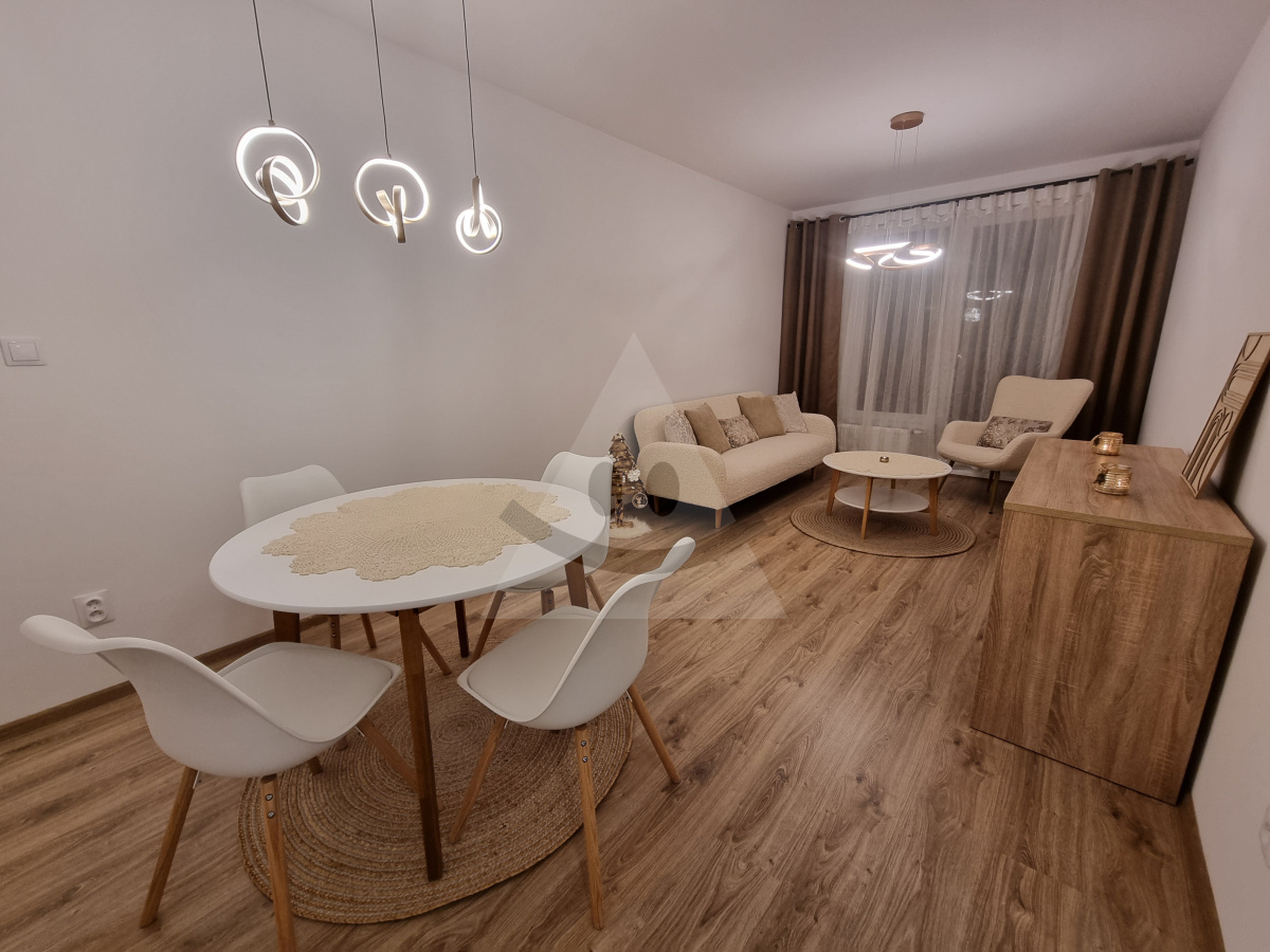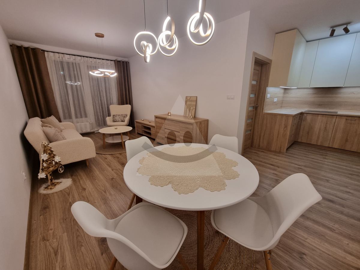 We offer 2,5-room flat for rent. Property is a new building. Located in on the floor number 4. The property is located near the shopping, hospital, School, nursery, bus stop, Food, restaurant, Hospitality, beautiful nature, place for tourism, highway. Current use of property is permanent housing. Byt is in private ownership. The windows are plastic. Heating is central public. There is lift, cellar, x bathroom, WC, brick core. The estate is oriented to the east. The building has 4 floors. Property is furnished. Ensuring the property is made security door. The building was built in 2024. The building is insulated.