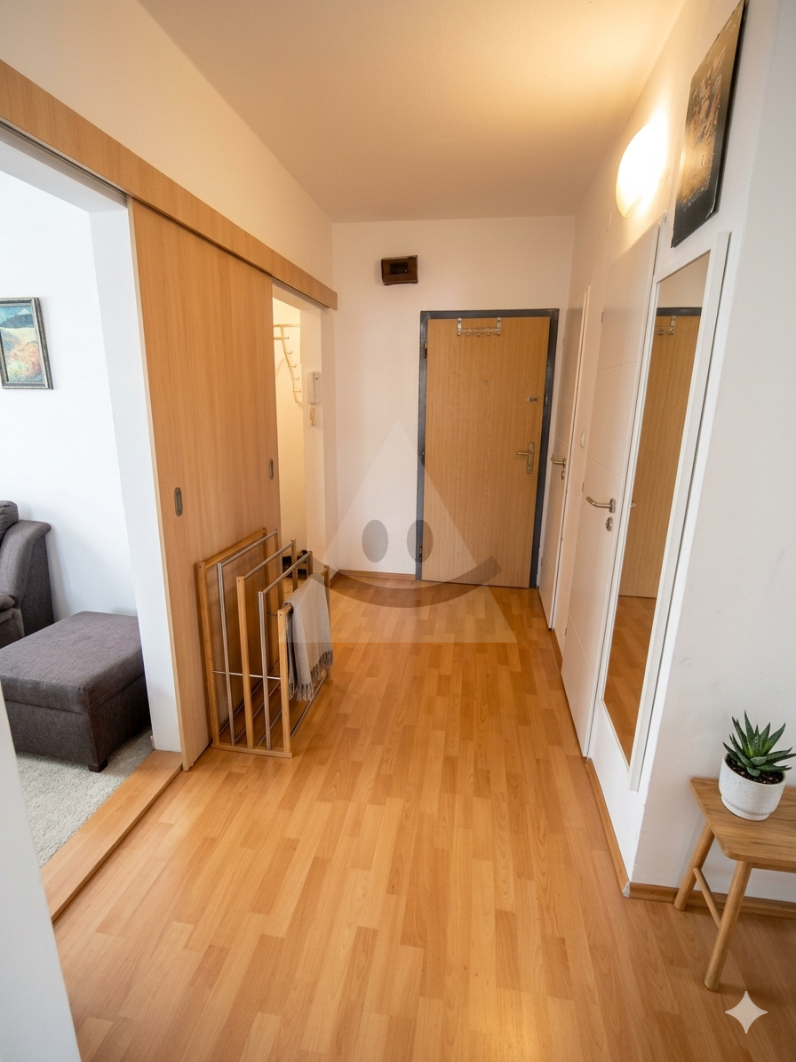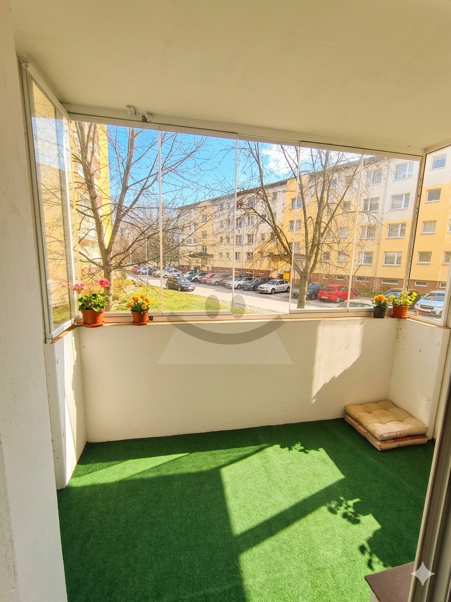 Dispozícia bytu je praktická a funkčná – pozostáva z troch nepriechodných izieb, pričom do jednej izby sa vstupuje cez kuchyňu. Kúpeľňa je samostatná, oddelená od WC. Byt disponuje priestrannou zasklenenou lodžiou o rozmere 3,5 × 2,04 m, ktorá poskytuje príjemný priestor na oddych počas celého roka.