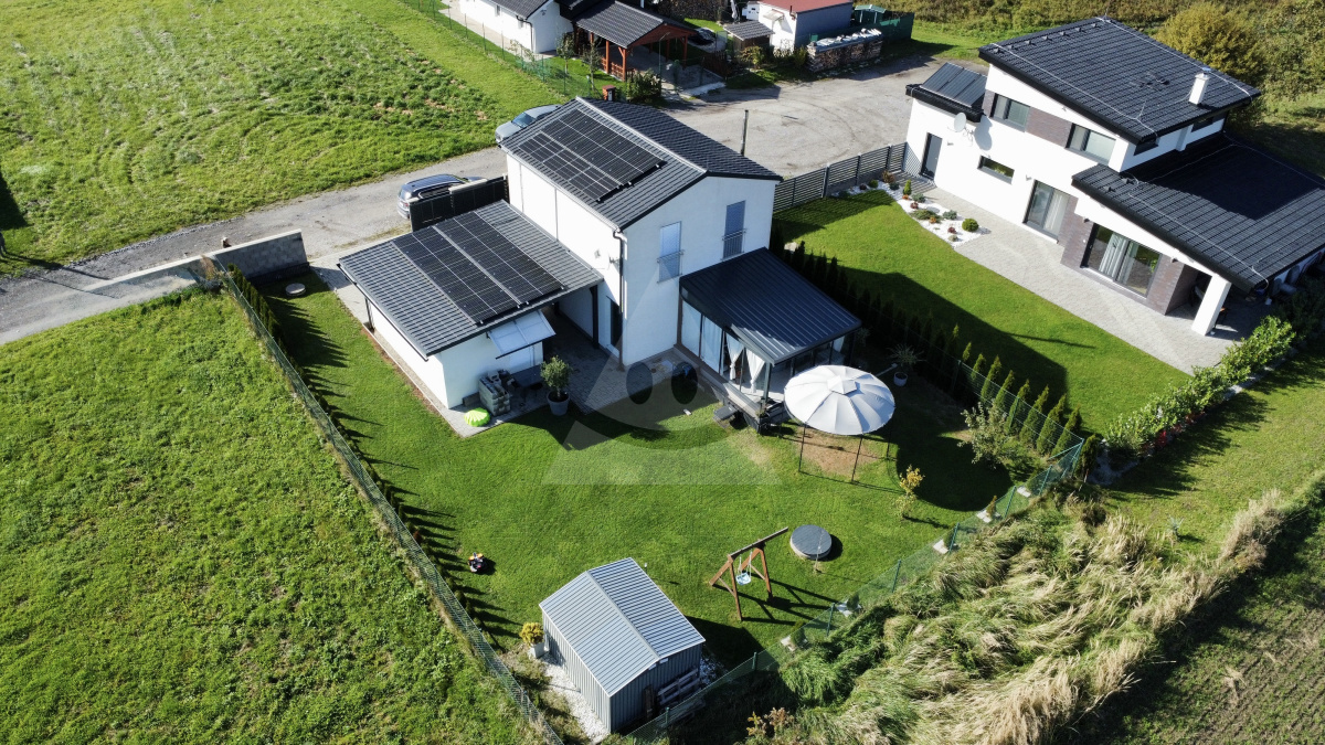 Exkluzívne ponúkame na predaj štýlový, montovaný rodinný dom, skolaudovaný v roku 2018, ktorý spája moderné technológie, nízke prevádzkové náklady a pokojné bývanie v tichej časti obce.