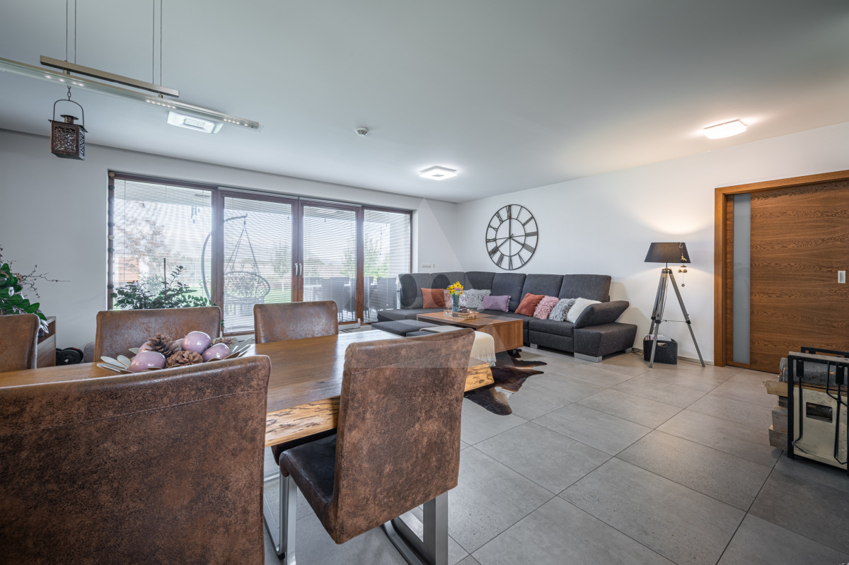• Priestranná obývacia izba prepojená s kuchyňou a jedálňou