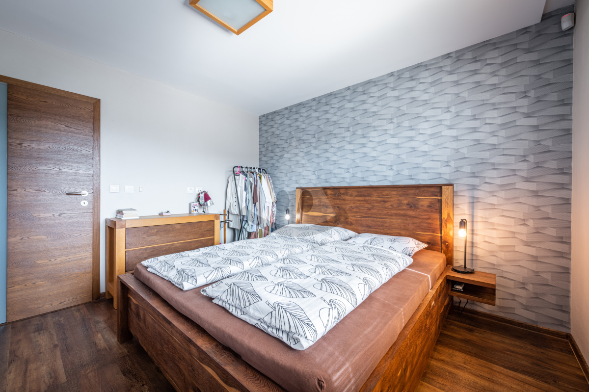• Tri samostatné izby, pričom pri izbách sa nachádza aj samostatný šatník