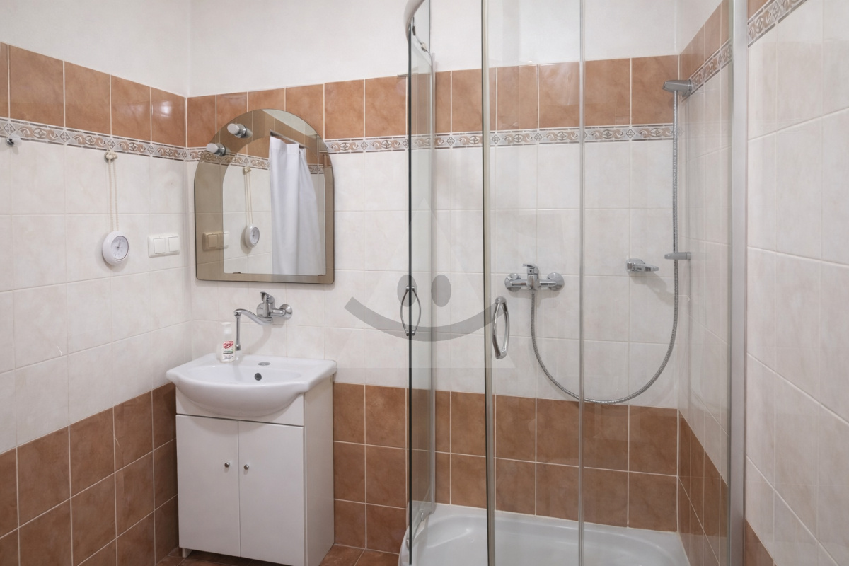 K dispozícii je smart TV, kuchynská linka, jedálenský stôl so stoličkami, rozkladacia sedačka, veľká šatníková skriňa, chladnička a práčka. Kúpeľňa je vybavená sprchovým kútom. Súčasťou bytu je aj pivnica.